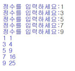 빈 리스트 하나를 선언하고 무한루프를 만들어 5개의 정수값을 입력받아 리스트에 넣은 후 for문을 이용하여 만들어진 리스트의 원소 합을 순서대로 다은과 같이 출력하는 프로그램을 작성하라.
